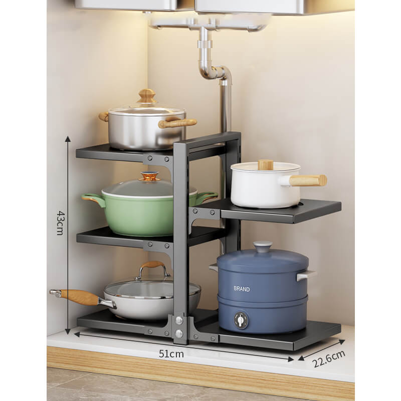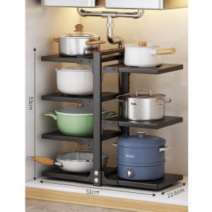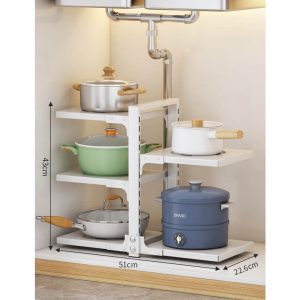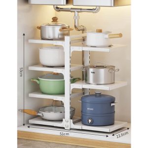 Maximize kitchen efficiency with this durable. multi-functional storage rack designed to declutter countertops. cabinets. or under-sink areas. Its versatile tiered structure accommodates pots. pans. utensils. and cleaning supplies. optimizing vertical space in compact kitchens.