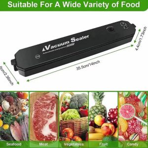 - Enhancing the Kitchen Ambiance: The sleek black color of the vacuum sealer gives it a modern and stylish appearance. It can complement various kitchen decor styles. adding a touch of elegance to your kitchen. Its compact design and black color make it a visually appealing addition to your kitchen appliances. enhancing the overall look of your culinary space.
