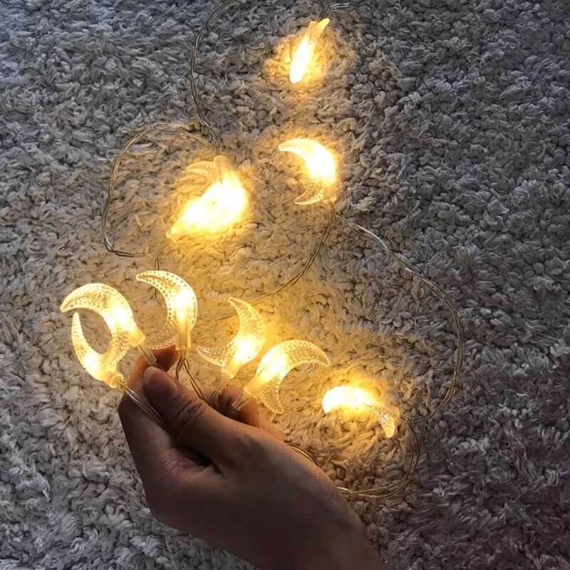 - Length: Typically 2–3 meters (check product details). with moons spaced evenly along a thin. transparent wire for a seamless. floating effect.