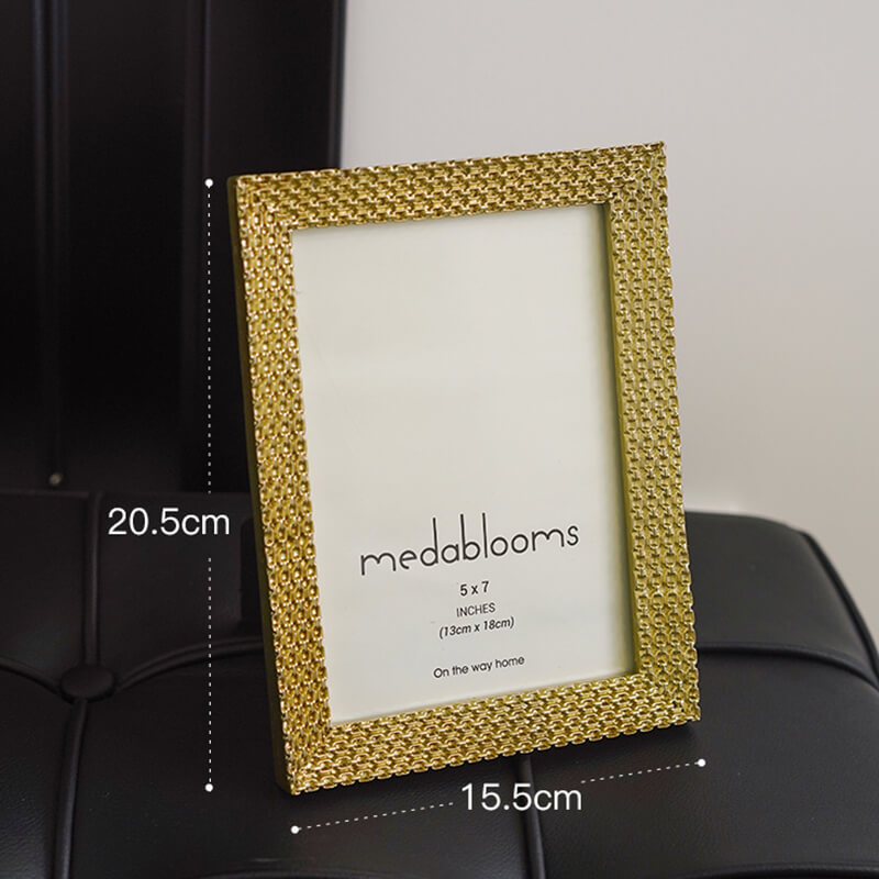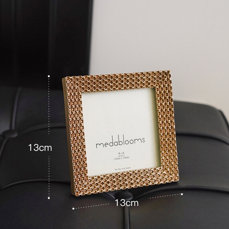 - Visual Interest: The combination of the smooth gold surface and the intricate chain texture creates a striking contrast. The texture adds depth and dimension to the frame. making it more visually engaging. The way the chain appears to wind around the frame gives it a dynamic and fluid feel. enhancing its overall aesthetic appeal. Whether displayed on a mantelpiece. a bedside table. or a gallery wall. the frame is sure to stand out and draw attention.