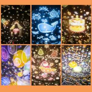 - 6 Different Films. switch lighting effects at will: large range projection.. bringing you and your family an immersive experience. It gives your kids and wife comfort and a feeling of relaxation at night while allowing you to enjoy a romantic moment with your partner.
