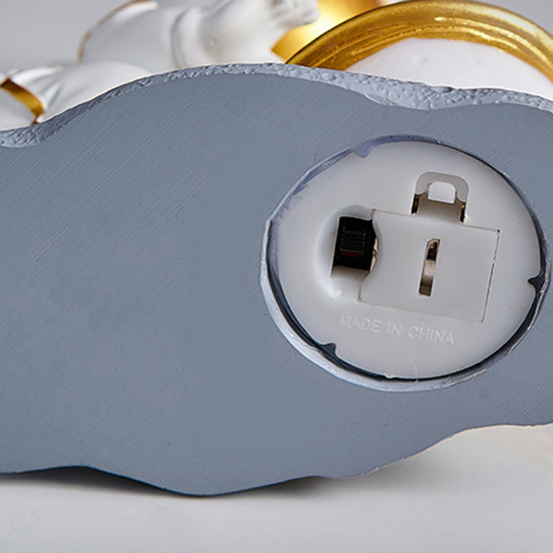 - Gentle Night Light Glow: Press the button on the astronaut’s base to toggle between two brightness levels: