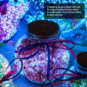 - Plug the cork stopper firmly and shake gently to mix the stars. Place the bottle in a well-lit area during the day to charge the fluorescence. then move it to a dark room to enjoy the glow.