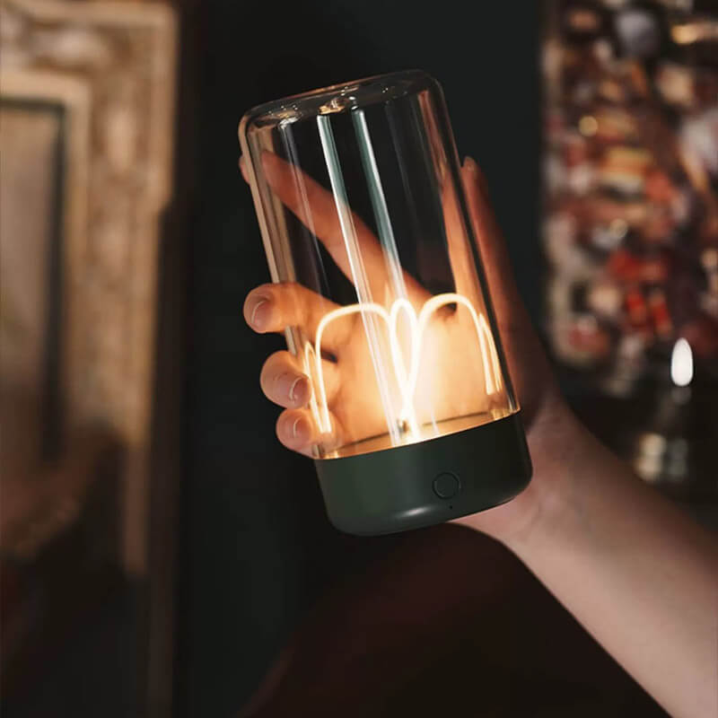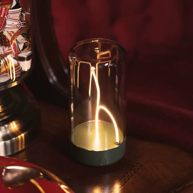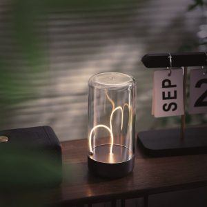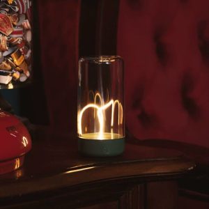 - Futuristic Aesthetics: The lamp features a floating LED filament suspended within a platinum crystal lampshade. creating a striking visual effect that resembles a miniature starry sky or a floating candle. The magnetic base holds the filament in place. adding an element of interactive wonder.
