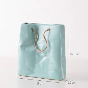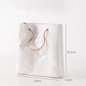 - Aesthetic Appeal: The paper bag-inspired design of these ceramic vases is their most distinctive feature. The simple folds give the vases a unique and eye-catching look. They bring a sense of modernity and creativity to the room. making them suitable for contemporary and minimalist decor styles. Whether placed on a table. shelf. or mantel. the unique shape draws the eye and enhances the overall aesthetic of the space.