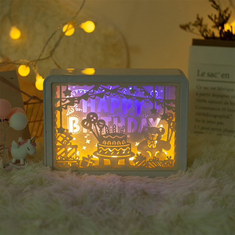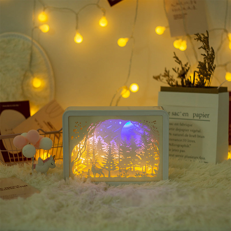 - Soft Diffused Light: A built-in LED strip emits a warm white light (≈2700K) that evenly illuminates the paper carvings. ensuring the shadows are crisp and the ambiance is cozy.