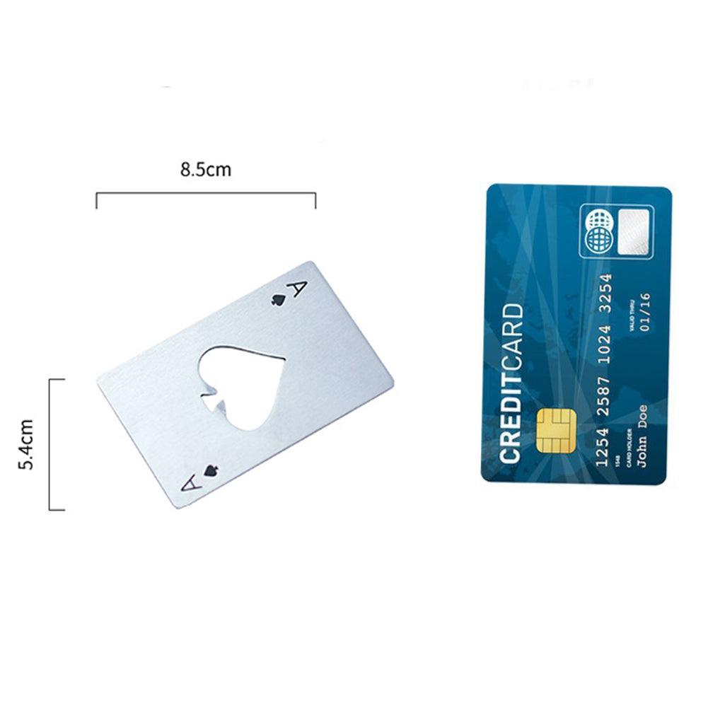 Credit card size. you can put it in your wallet. never look for a bottle opener