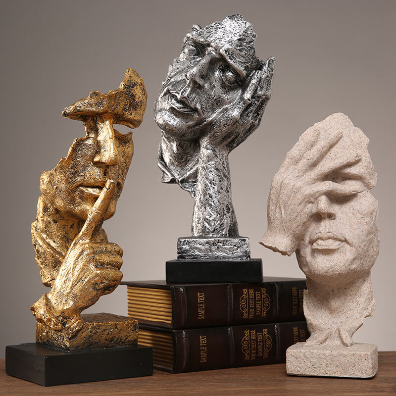 Embrace minimalist philosophy with this abstract resin sculpture inspired by the timeless adage See no evil. hear no evil. speak no evil. Designed for modern interiors. its sleek lines and symbolic Don’t listen. don’t look. don’t speak motif add contemplative elegance to living rooms. offices. or meditation spaces.