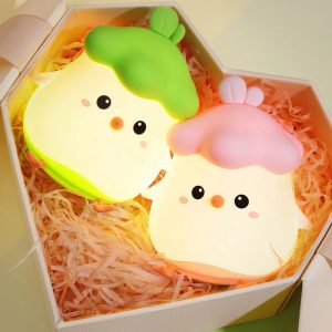 - Cute Pet Shapes: Available in pink (e.g.. bunny) and green (e.g.. frog). each night light features a squishy silicone body with playful details like floppy ears. round eyes. and textured fur or scales. The design is inspired by beloved pets. evoking a sense of comfort and joy.