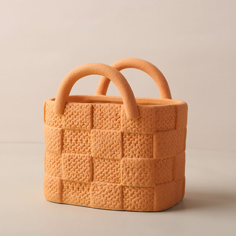 - Enhancing the Living Space: This spring handbag ceramic vase can instantly transform the look of a room. Its creative and fashionable design makes it a stylish addition to any space. It can add a touch of sophistication and creativity to a plain or dull room. making it a great option for those who want to make a statement with their decor. Whether you want to create a cozy and inviting living room or a more elegant and trendy bedroom. this vase can play an important role in achieving the desired aesthetic.