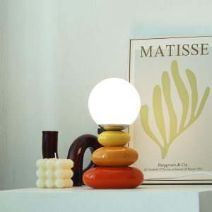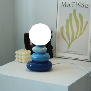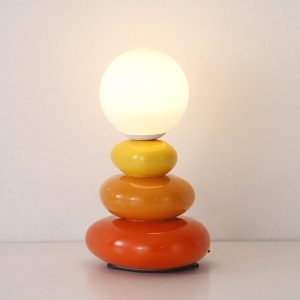 - Textural Authenticity: The lamp’s base mimics the look of stacked stone with handcrafted ceramic. featuring realistic grooves. ridges. and color variations that evoke natural rock formations. The matte finish in Blue. Orange. or Gray adds a modern twist to the rustic theme.