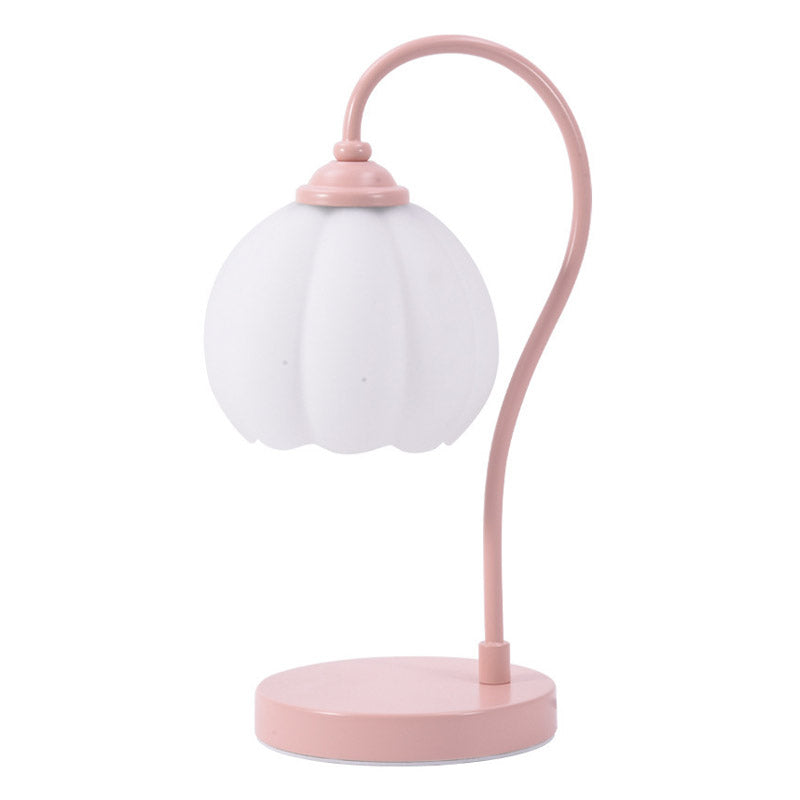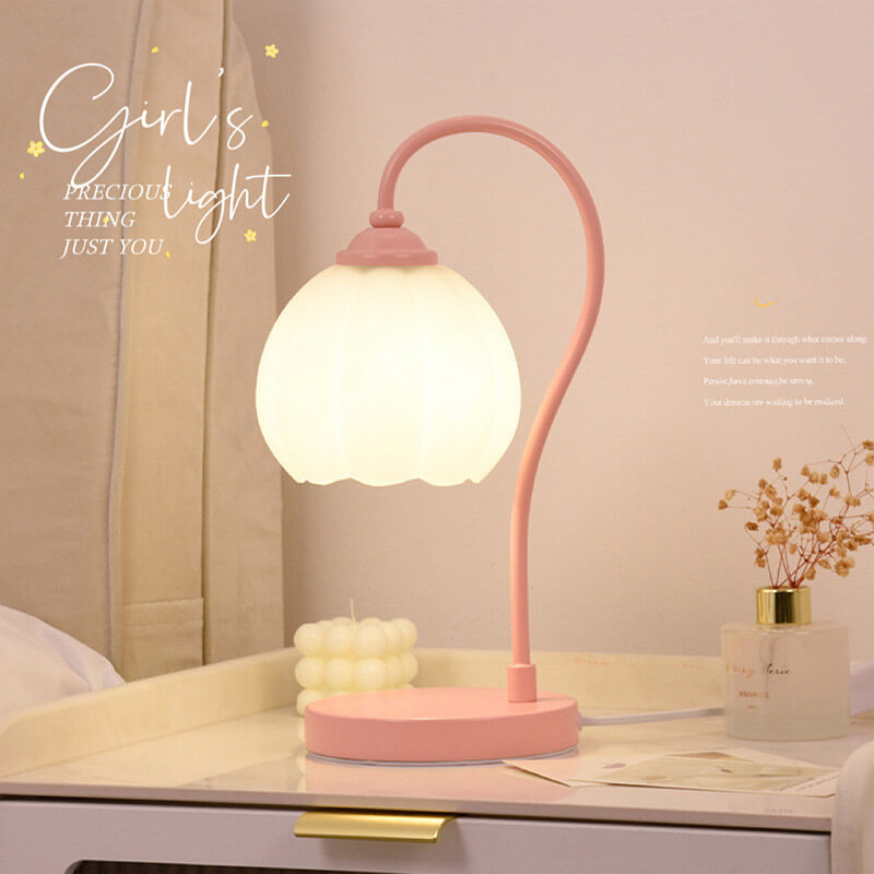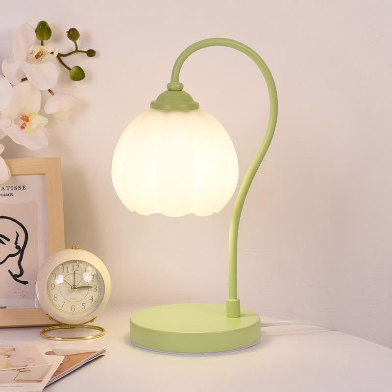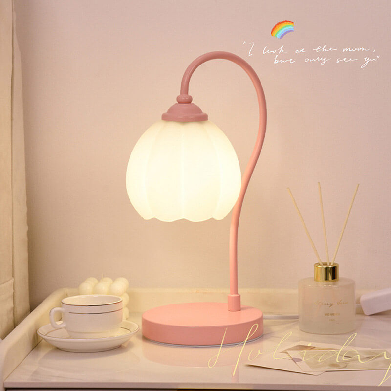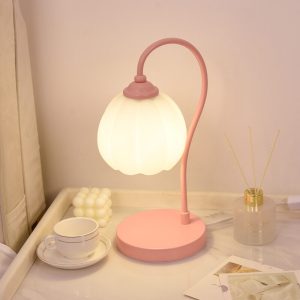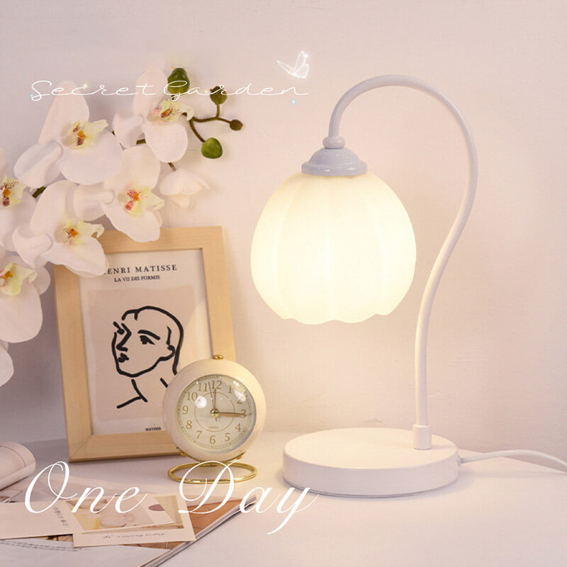 - Glass Lampshade: The lampshade is shaped like a blooming tulip with layered. curved glass petals in white. pink. or green. The translucent glass diffuses light softly. creating a warm. inviting ambiance while showcasing the intricate petal details.