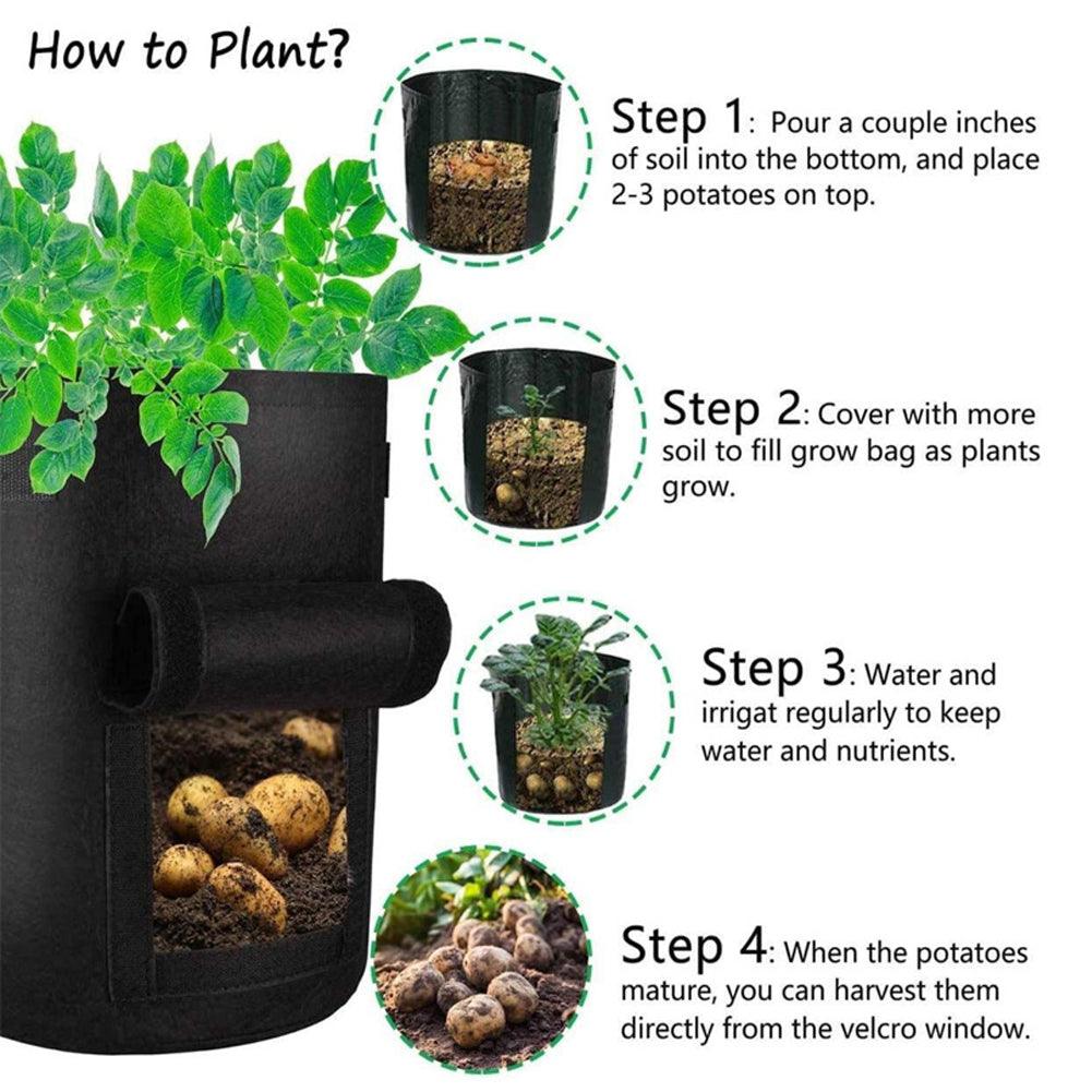 Easy to Store and Reuse: These bags can be folded compactly for storage. taking up minimal space. The lid is easy to lift and open. making it simple to harvest potatoes with little effort. Add about 4 to 6 seeds per bag. At the end of the growing season. simply empty. clean. and store the bags for future use.