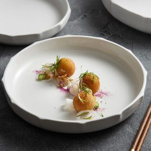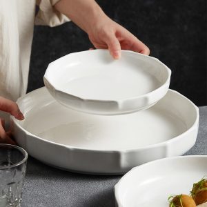 - Sturdy Ceramic Construction: Fired at high temperatures. the ceramic is robust and resistant to chips. cracks. and stains. ensuring long-term use. The deep. rounded shape of the plate is ideal for holding generous portions of soup. chili. or pasta. while the vertical lines help prevent spills.