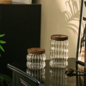 Lighteme Wavy Striped Glass Storage Jar – Elegant Pantry Essential