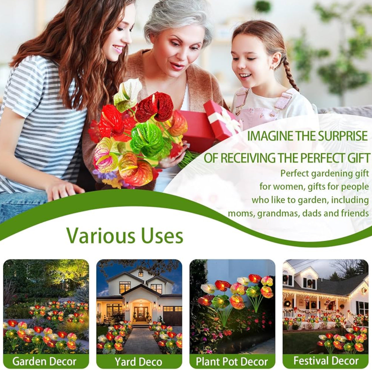 Ideal for gardening enthusiasts (moms. dads. friends) as birthday/Christmas gifts. Multi-set installations create breathtaking floral displays for: