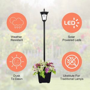 Enhance pathways or gardens by mounting the lamp within decorative planters. combining functional lighting with aesthetic landscaping.
