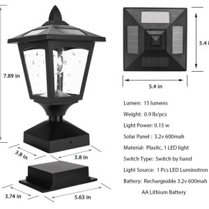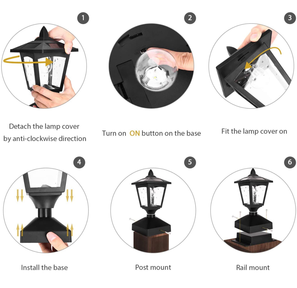 - Position in Sunlight: Install on a clean. unobstructed post top to ensure the solar panel receives 6–8 hours of direct sunlight daily.