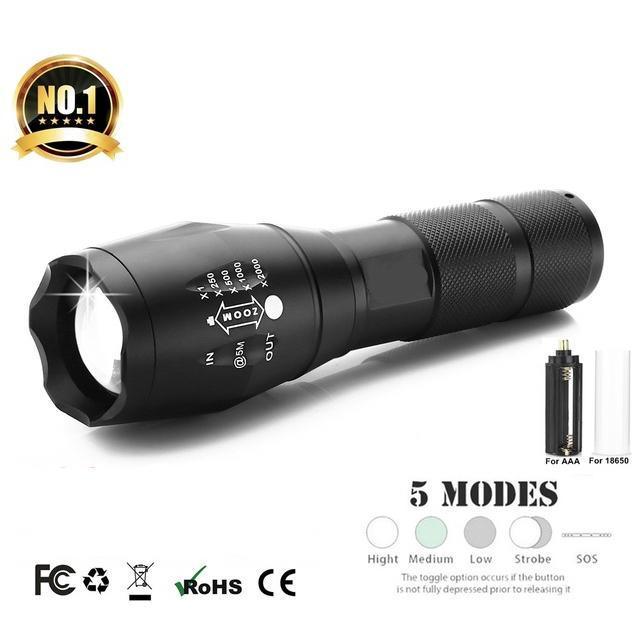 ULTRA BRIGHT MILITARY-LED FLASHLIGHT 3800 lumens, powerful enough to light up an entire room or zoom in on distant objects with 500m beam.