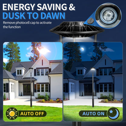 Auto On/Off Photocell Sensor: Activates at dusk and deactivates at dawn, saving energy and ensuring consistent nighttime visibility.