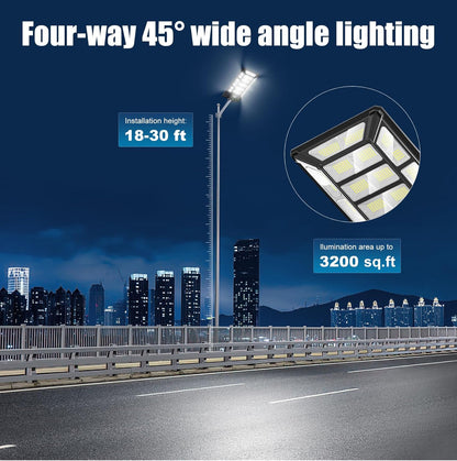 Lighteme 1800W Solar Street Lights Outdoor Waterproof 6500K Dusk to Dawn 180000 Lumen Motion Sensor Super Bright Solar Parking Lot Light
