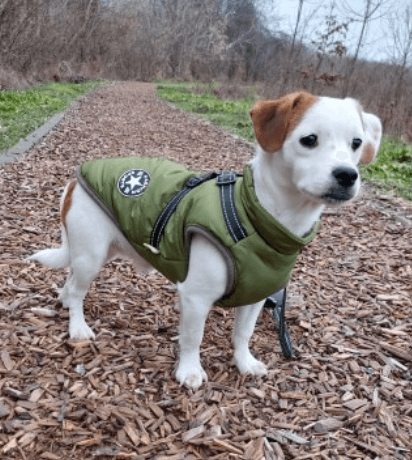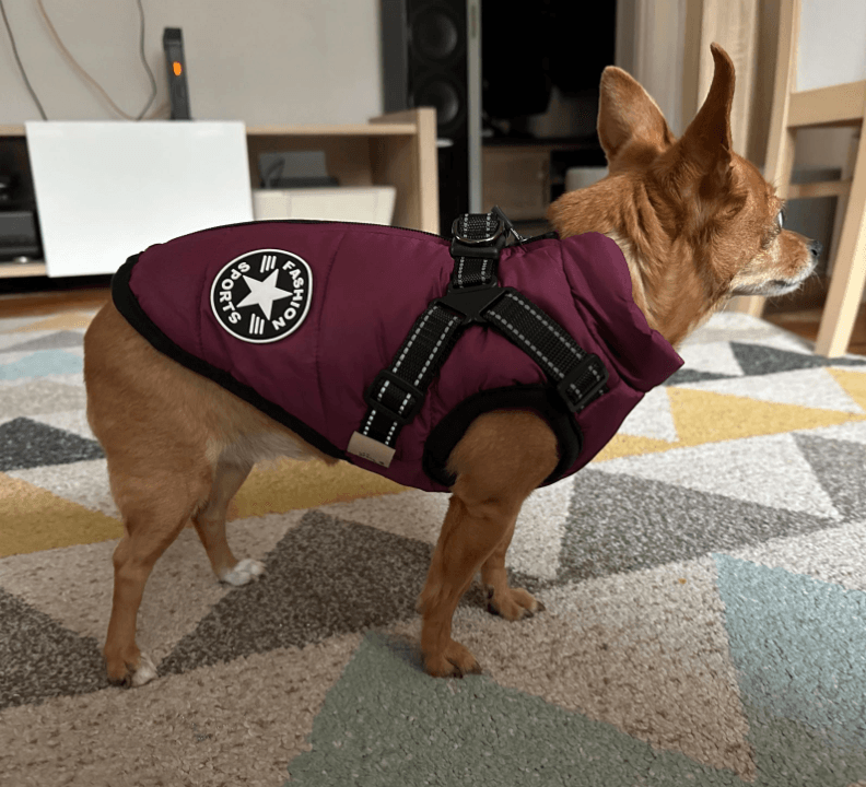 With his new jacket, your pup will be able to go outside with you for hours without being cold, while being safe and comfortable. He'll also be able to play with other dogs!