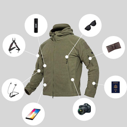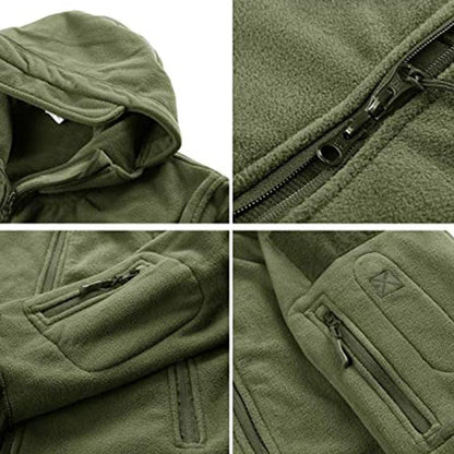 - Warm Fleece: Men's hooded tactical style jacket with ultra-soft warm fleece