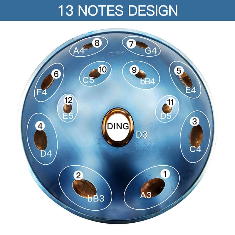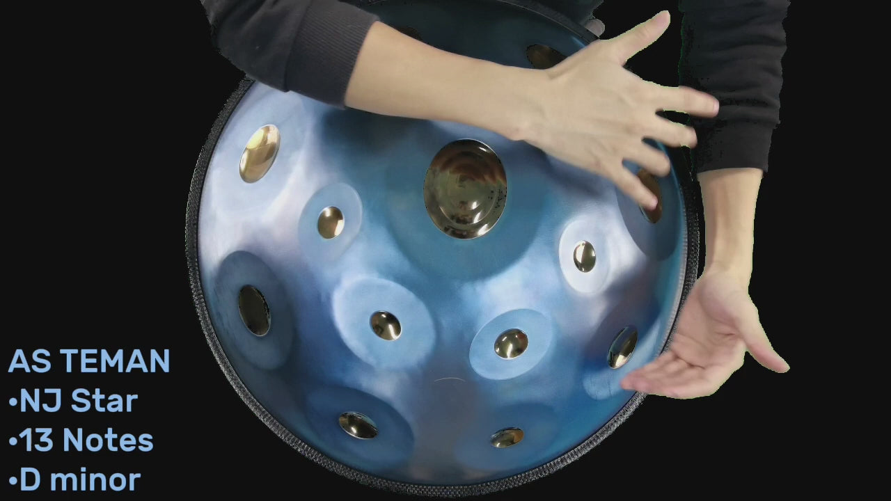 Lighteme As Teman Handpan NJ Star 13 Notes D Minor Scale Blue hangdrum with gift set