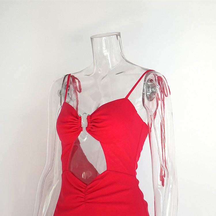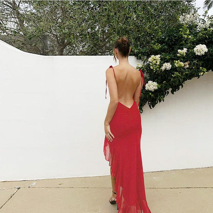 Crafted with a stunning lace-up backless design and a flattering hip-hugging fit, this dress effortlessly combines sexy and chic.