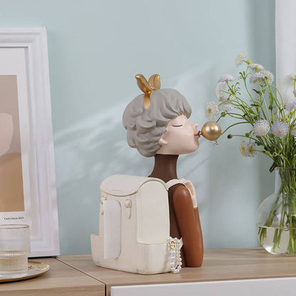 Revitalize your space with this vibrant resin storage piece, combining playful artistry and practicality. Designed as a cheerful backpack-wearing girl, it doubles as a decorative accent and functional tissue storage box, infusing modern flair into living rooms, bedrooms, or entryways.