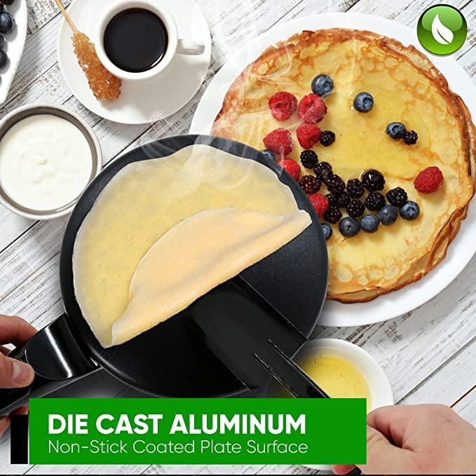 Versatility - With the non-stick plate surface, you can quickly and easily make crepes, soft tortillas, tacos, and many more breakfast favorites in 20 seconds, even without cooking experience, forget your old crepe pan.