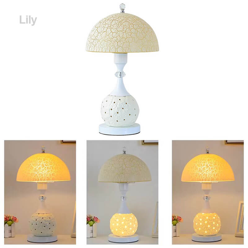 - E27 Bulb Compatibility: Use a dimmable E27 bulb (not included) to adjust brightness from a soft nightlight glow (2700K) to a brighter reading light (4000K). The crackle ceramic base casts intricate shadow patterns on walls, enhancing the lamp’s artistic appeal.