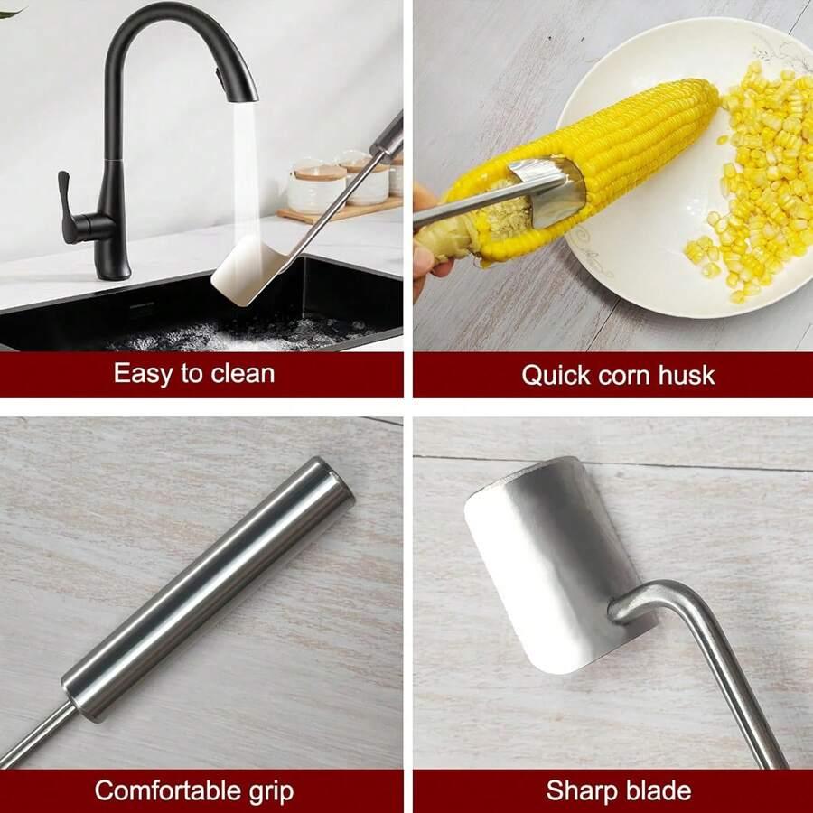 - Quickly shuck corn with the help of this corn thresher, with which you can quickly and easily obtain fresh corn kernels. The blade is super sharp but not dangerous. Easily remove corn from the cob effortlessly and efficiently, not messy, which saves food. And corn sheller corn cob stripper tool is easy to clean, it can be washed in the dishwasher or directly with clear water.
