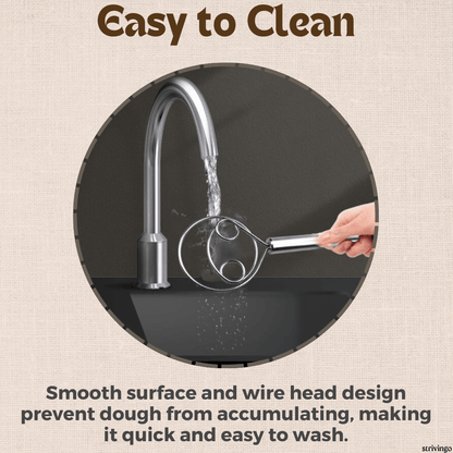 ✔️ EASY TO CLEAN: The smooth surface and wire head design prevent dough from accumulating, making it quick and easy to wash with water after use.