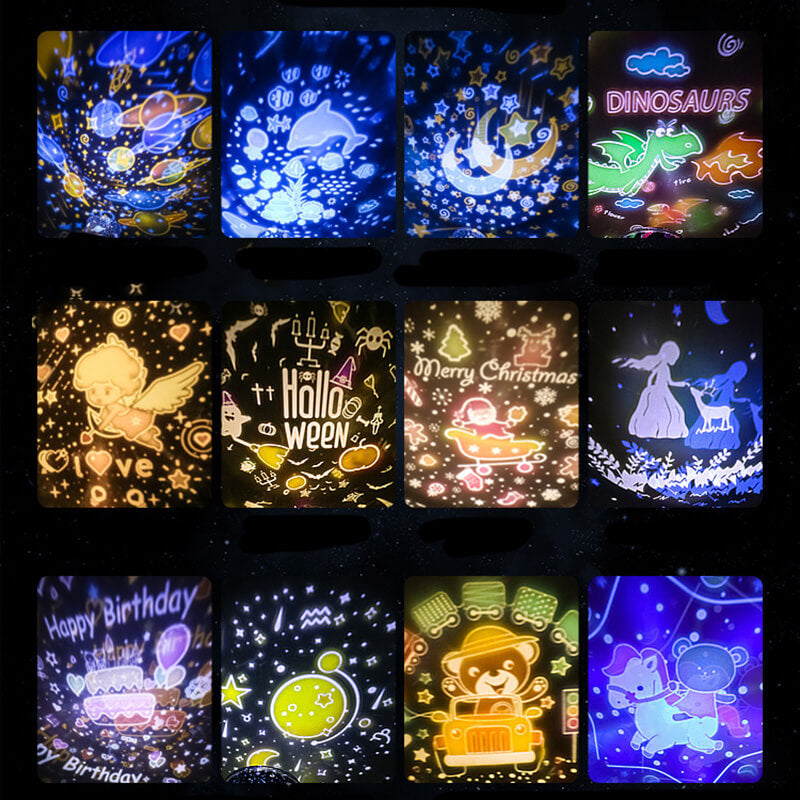 - 12 Different Films, switch lighting effects at will: large range projection,, bringing you and your family an immersive experience, It gives your kids and wife comfort and a feeling of relaxation at night while allowing you to enjoy a romantic moment with your partner.
