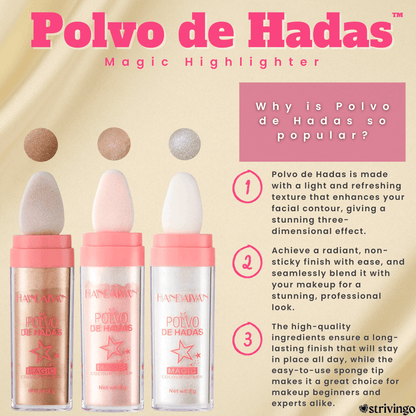 Polvo de Hadas Highlighter is more than just a beauty product, it's a must-have tool for every woman who wants to feel confident and empowered. The stunning shimmering effect of this highlighter is guaranteed to turn heads and make you feel like a fairy princess.