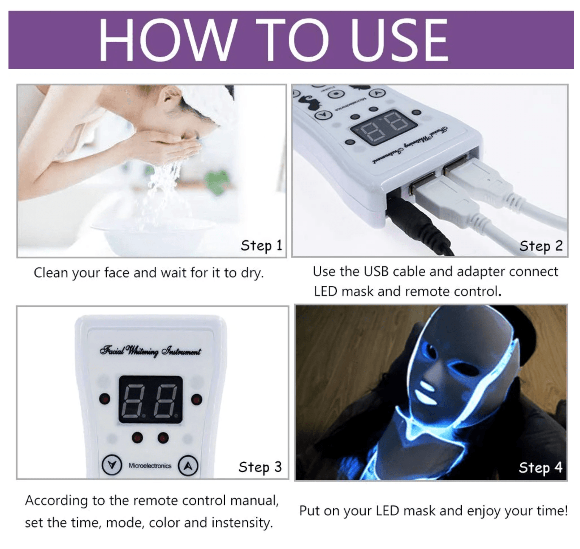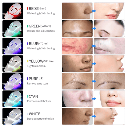 The Colourful LED Light Therapy Mask provides a non-invasive skin rejuvenation through the healing properties of 7 different light wavelengths with no down time and no side effects.