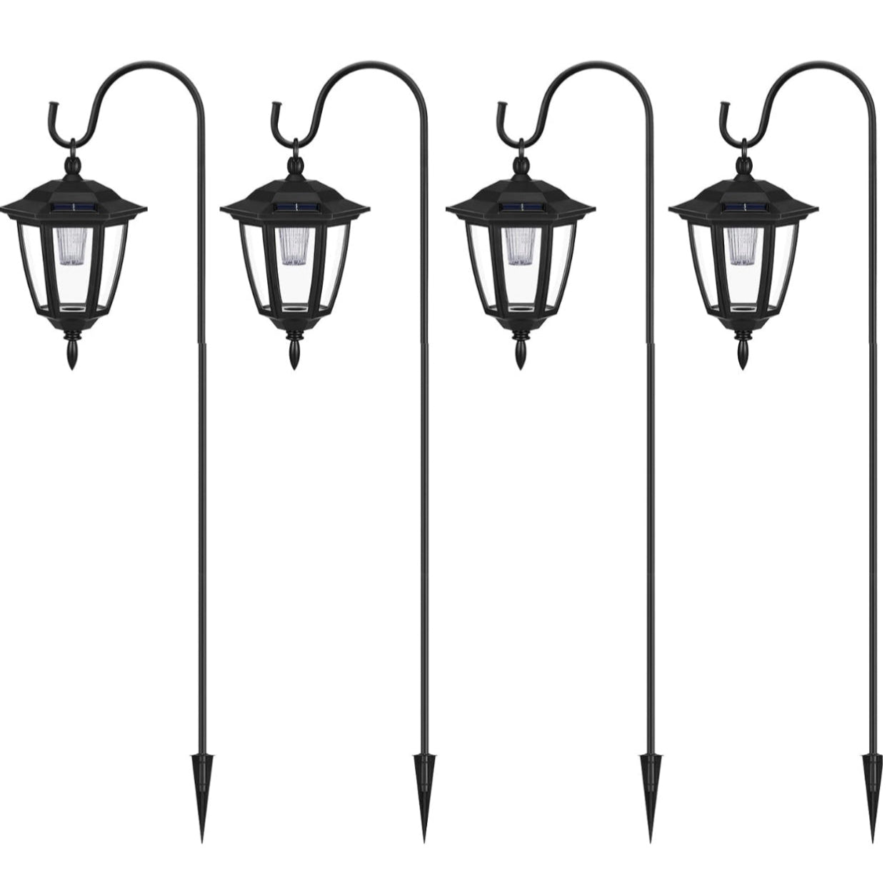 Lighteme Solar Hanging Lights Dual Use Shepherd Hook Lights Outdoor, 4 Pack
