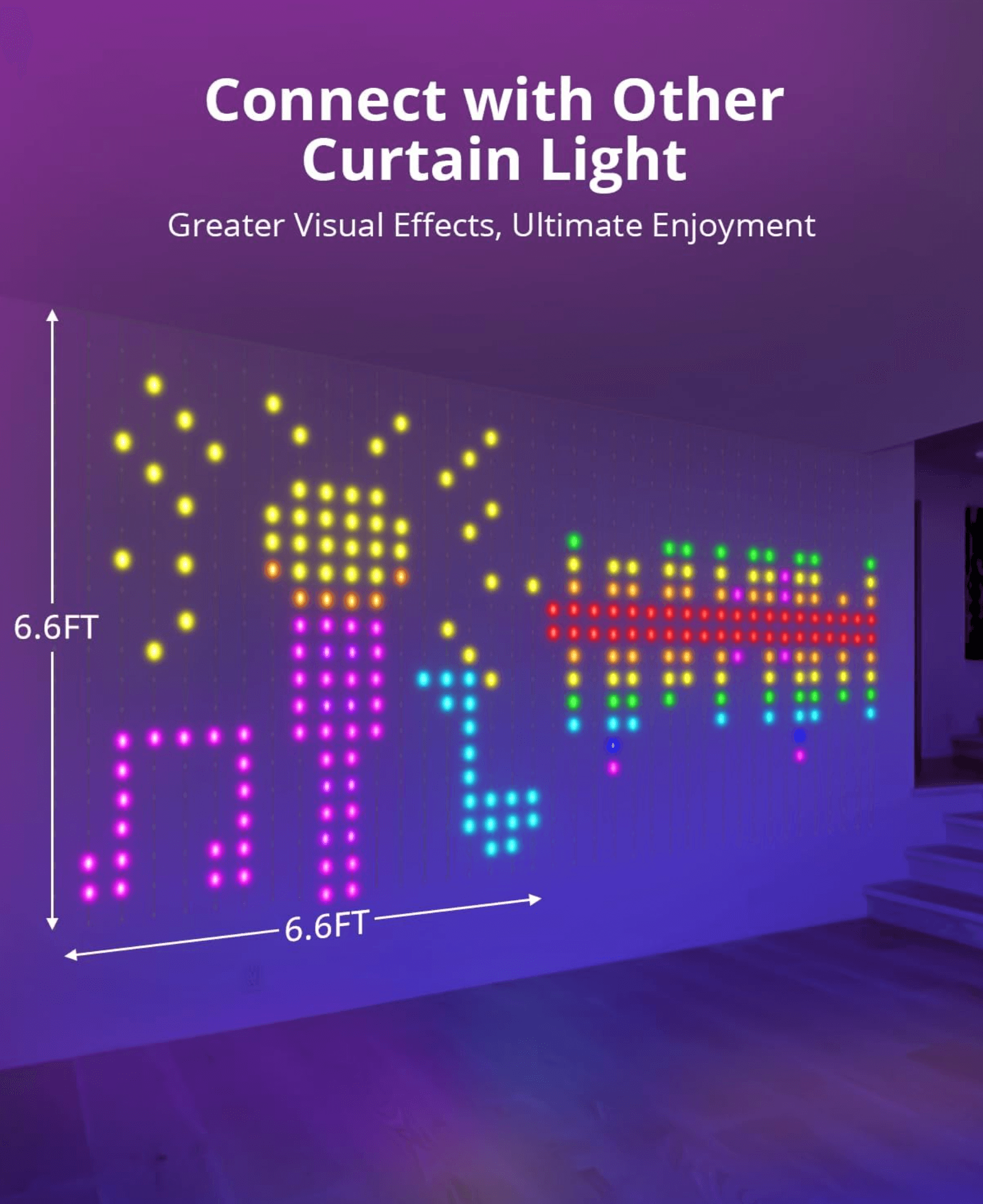 Step into a world of glowing colors and dynamic light with Lighteme Smart Curtain Lights. With an impressive array of 400 LEDs, these lights are not just decorative elements but also a gateway to creating your own mesmerizing light show.