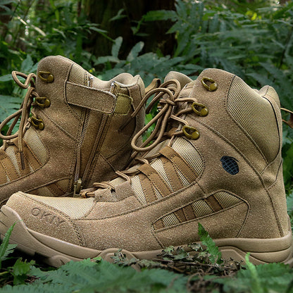 When traversing demanding terrain in rough climates, this Men's High-top Tactical Outdoor Boot Lightweight Military Boot provides superb functionality, arch support, and comfort. Its water-resistant suede leather and nylon fabric upper with fore and back bumper in toe and heel, enhance the hardness and strength, for long-lasting support and water-resistance. Durable, lightweight, breathable, strong grip and protective, all in one. Whether in jungle, desert or in duty work, you’ll need these boots to provide you maximum comfort and long-lasting. Tactical design with urban fashion style, making it practical to outdoor and city life.