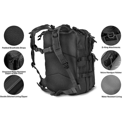 WATERPROOF LINING, RUGGED MATERIAL, OVERSIZED ZIPPERS - Only the highest quality, comfortable padded, and breathable mesh with double-stitched seams were used in this over-engineered design to last for a lifetime of every day carrying to rugged outdoor hiking. 1 DAY TO 3 DAY PACK - - 10"w x 13"l x 19"h - Collapsible / Expandable design with our proprietary compression straps allow the backpack to be cinched down to the small 20L size or expanded out for a 3-Day overnight adventure