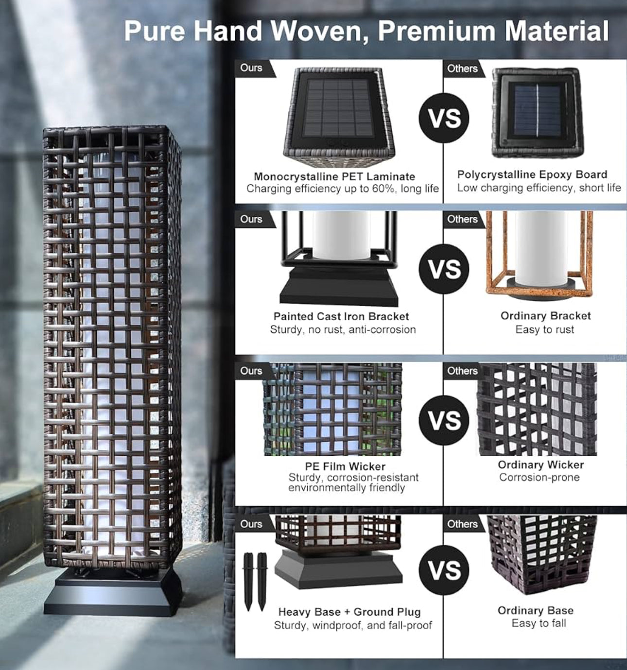 - Weatherproof Design: IP65-rated solar panel and PE-coated resin wicker withstand rain, snow, and UV exposure.