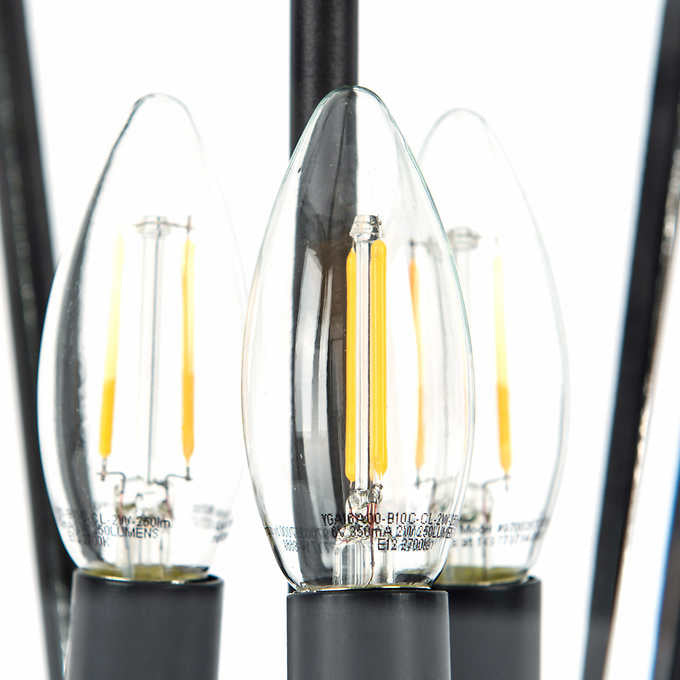 - Light Source: 3x replaceable candelabra LEDs (6W total)