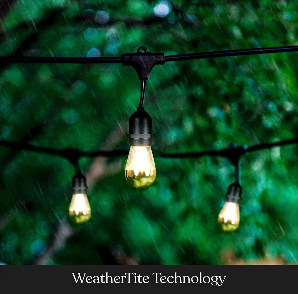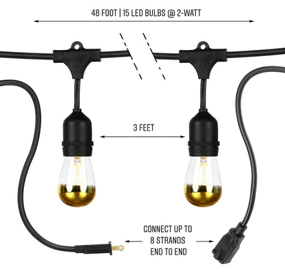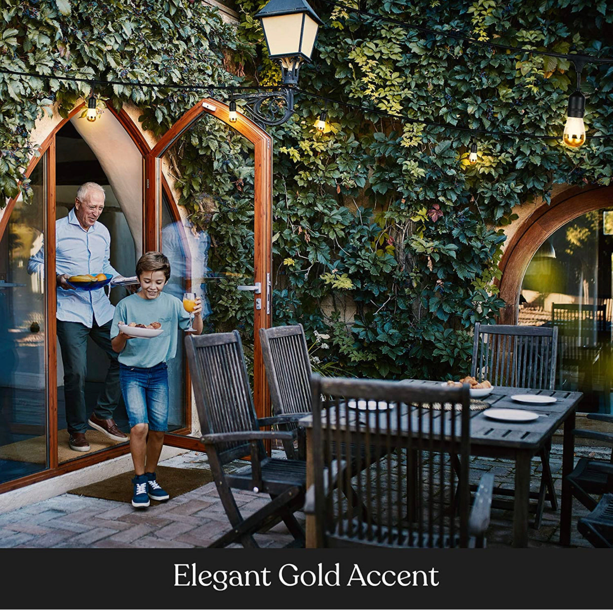 Lighteme Outdoor String Lights 48Ft Plug-In Anti Glare, Beautiful Gold Tip LED Bulbs - 48 Ft