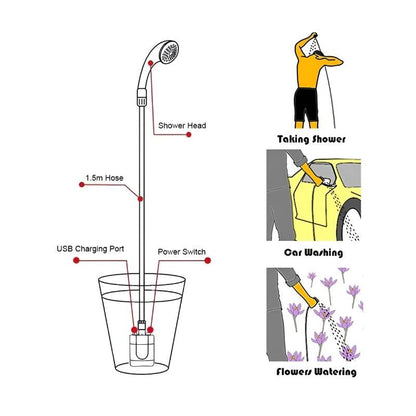 ✔ Versatile Use - Perfect for various outdoor activities such as camping, hiking, pet cleaning, car washing, and plant watering.