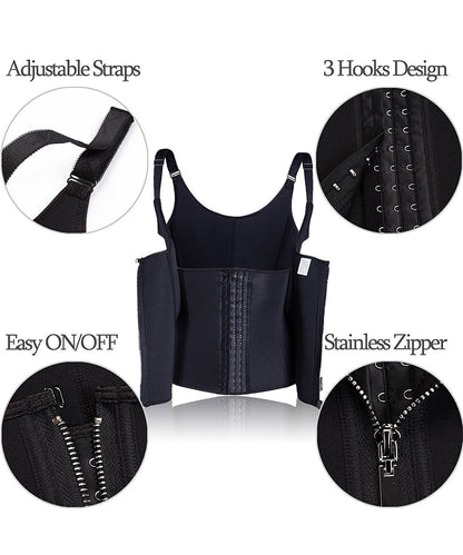 - LIGHTWEIGHT & HIGH QUALITY: High-quality zipper is easy to pull from the bottom and allows you to hide the corset and gives you a slimmer and cleaner look. U-type Anti-droop breast design helps push up breasts and effective firm control of armpits & back flabby fat. Three columns of hook-and-eye closures ensure this waist cincher vest fits your figure perfectly.