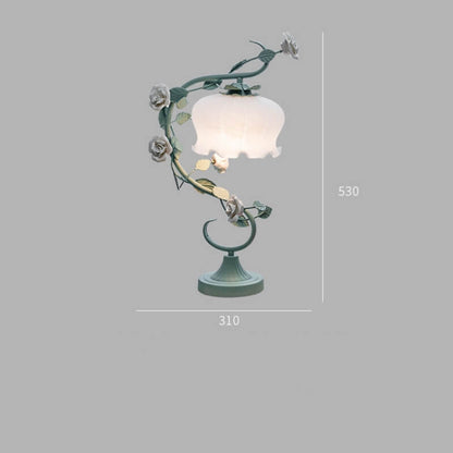- Vintage Garden Vibe: The metal stem and base, finished in antique bronze or white, evoke the charm of a retro garden fence, while the glass lampshade (shaped like a cloche or vase) encases the flowers, creating a preserved-bloom effect.