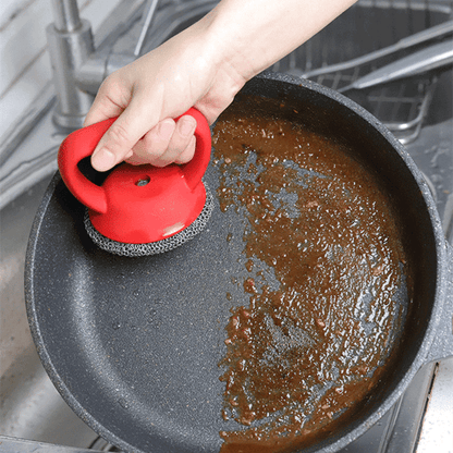 Its ergonomic silicone handle provides a comfortable grip, while the stainless steel chainmail removes debris without damaging the pan.