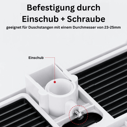 Compatible with most shower rods (universal), with a diameter of 0.91-0.98 inches (23-25 mm). Particularly convenient: you can attach our Lighteme at any height on the shower rod, which is very convenient for you.