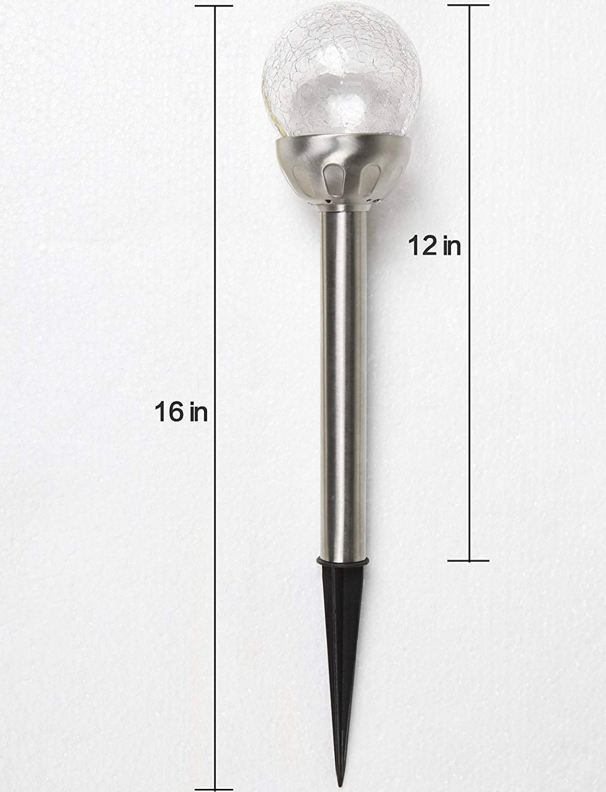 - Dimensions: 3.75" diameter (glass ball); easy-to-stake design for quick placement